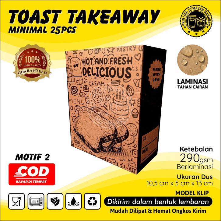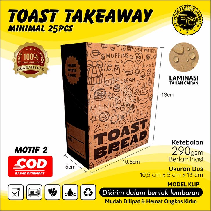PROMO Toast Box MOTIF Bread Take Away Kemasan Roti Panggang Sandwich Kentang Goreng Cromboloni Grosir ( 25 PCS )