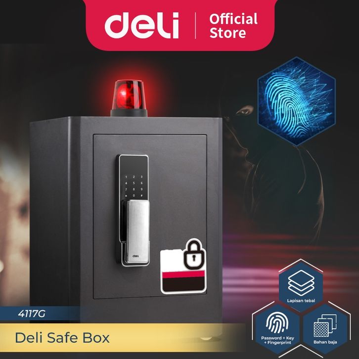 Deli Brankas Besi Digital / Fingerprint Digital Safe Box 43x40x71 cm 3 Unlocking Step Brankas Sidik Jari 4117G