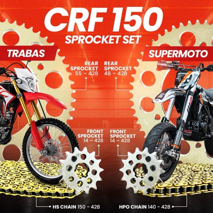 Gear Gir Set TK 428 Honda Crf 150 L & Rantai TK 428 Type HS Gold Motor Racing - Motorcycle