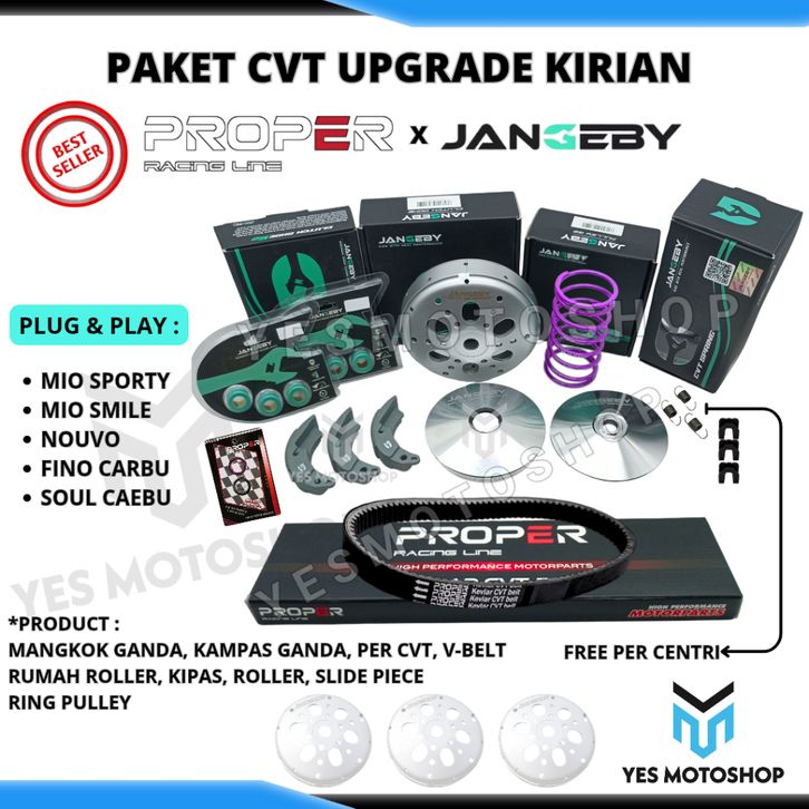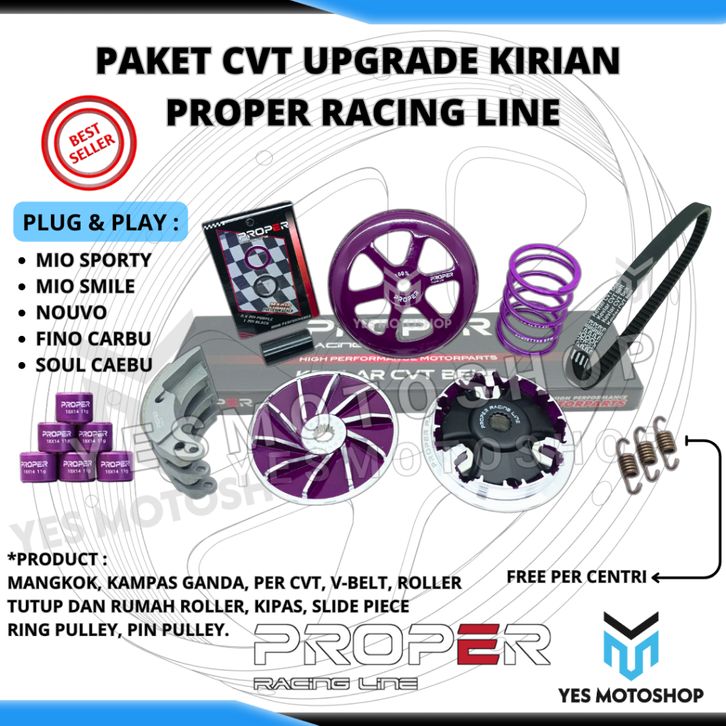 PAKET UPGRADE CVT PROPER RACING LINE MIO SPORTY SMILE NOUVO SOUL CARBU PULLEY SET MANGKOK ROLLER