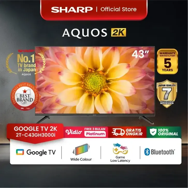 SHARP SMART GOOGLE TV 24 32 43 50 INCH 2T-C32GH3000I TELEVISI DIGITAL ANDROID AQUOS LED FULL HD GARANSI RESMI ORIGINAL