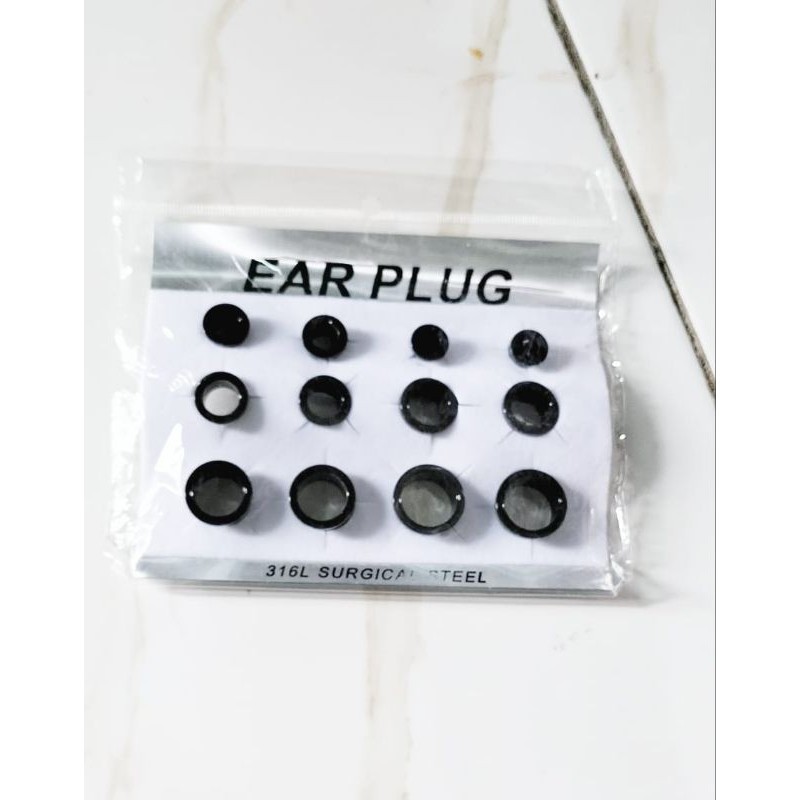 GROSIR 12PCS ANTING EAR PLUG ANTING METAL PRIA 12PCS DALAM SATU CARD