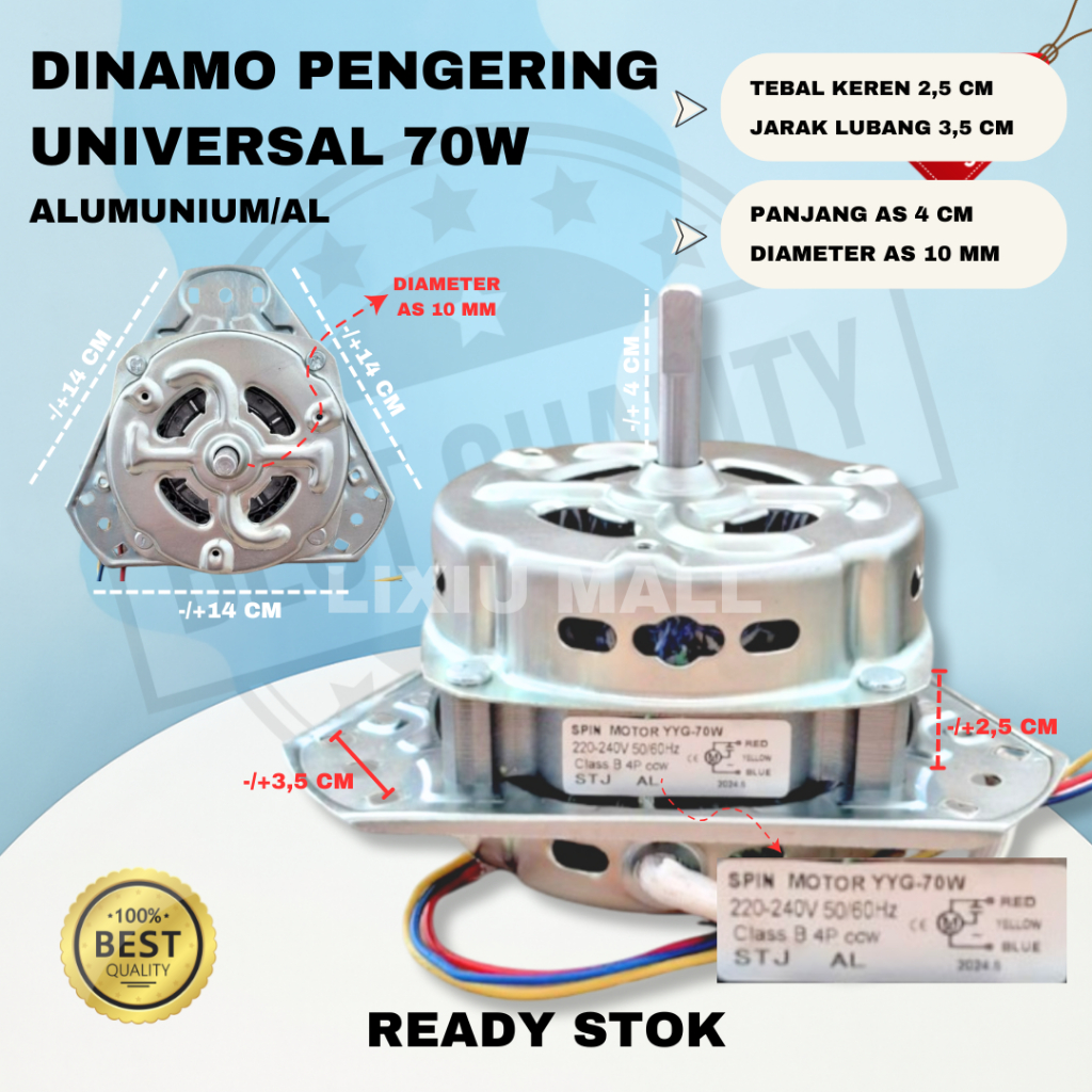 Dinamo Spin Dinamo Pengering Mesin Cuci Polytron as 10mm YYG Spin 70watt Alumunium