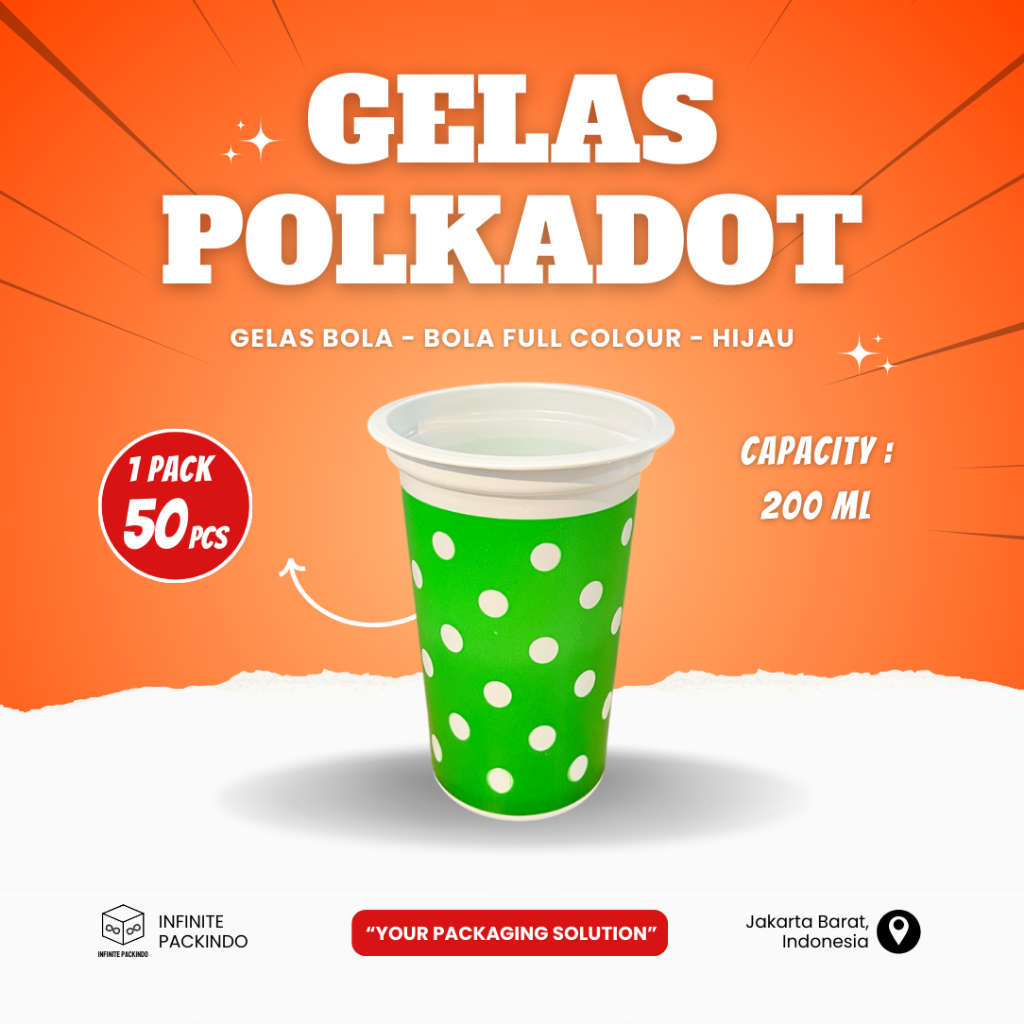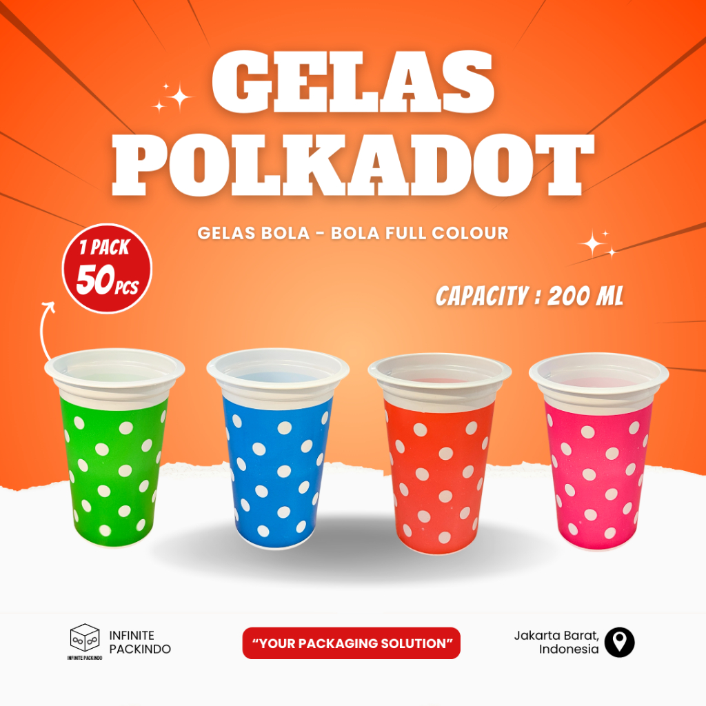 READY STOCK (ISI 50 PCS) Gelas Plastik Polkadot Warna / Gelas Bola-Bola Warna Murah / Gelas Polkadot Full Colour