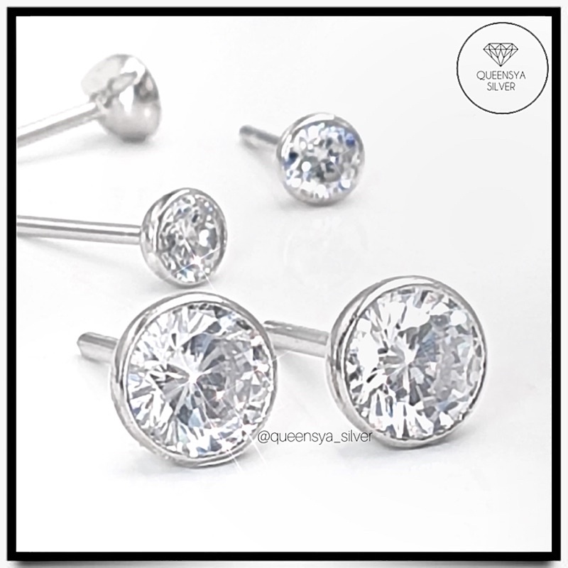 Anting Korea Anting Tusuk Anting Pria Wanita Silver Asli 925 Model MATA BURUNG Lapis Putih Kuning XS-XL Queen