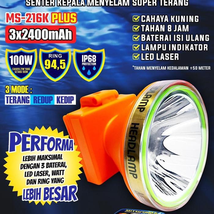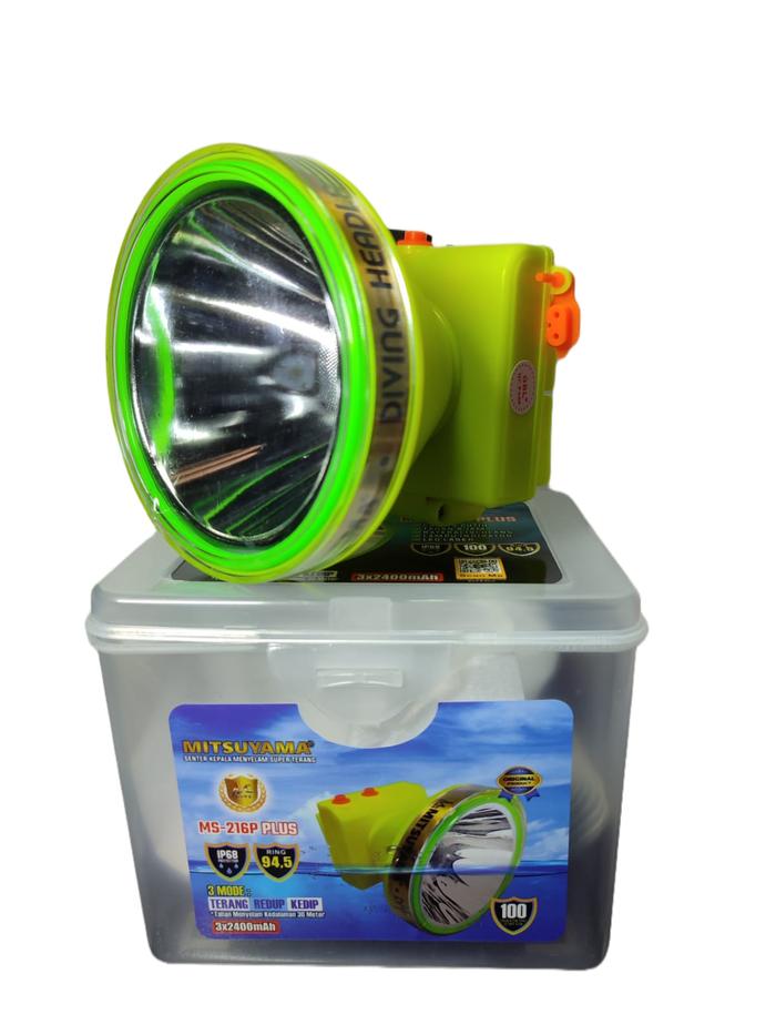 SENTER KEPALA SELAM 100WATT MITSUYAMA MS-216P PLUS- CAHAYA SUPER TERANG - BATERAI 7200MAH TAHAN LAMA