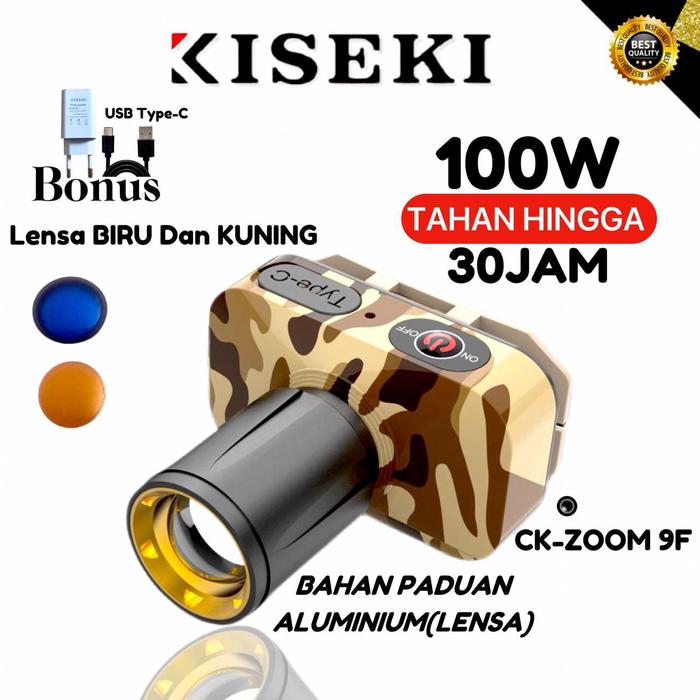 SENTER KEPALA KISEKI CK-ZOOM 9F 100WATT BATERAI 6000MAH TAHAN 30JAM - BAHAN ALMUNIUM - ZOOM JARAK