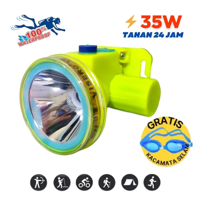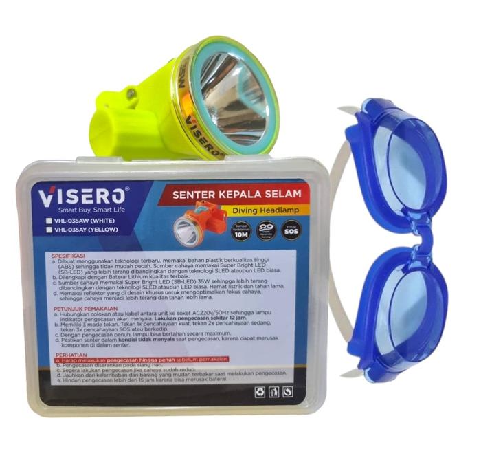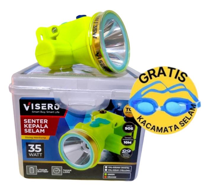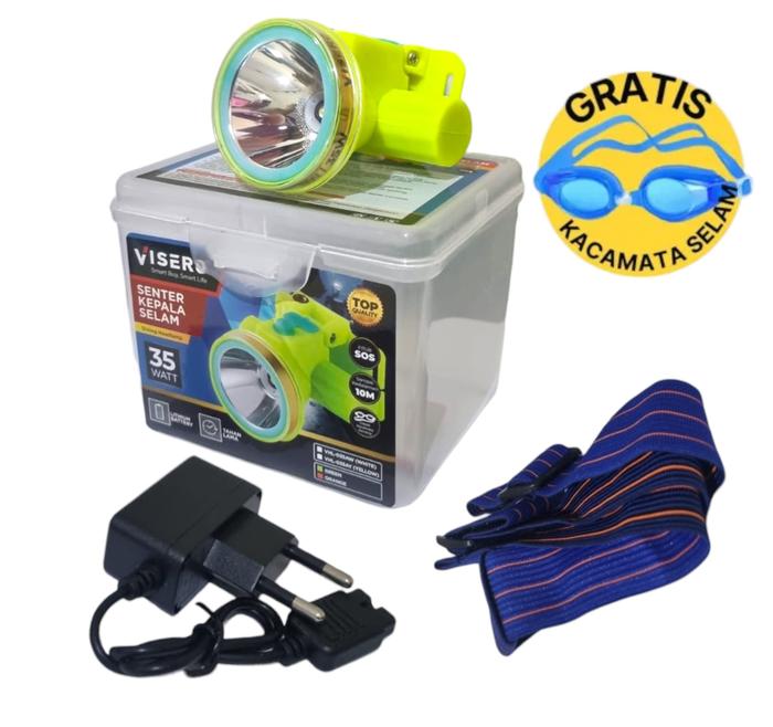 Senter Kepala Selam VISERO VHL-035 AW Cahaya PUTIH 35 Watt 3 Mode 4800mAh Tahan 24 Jam Menyelam 25