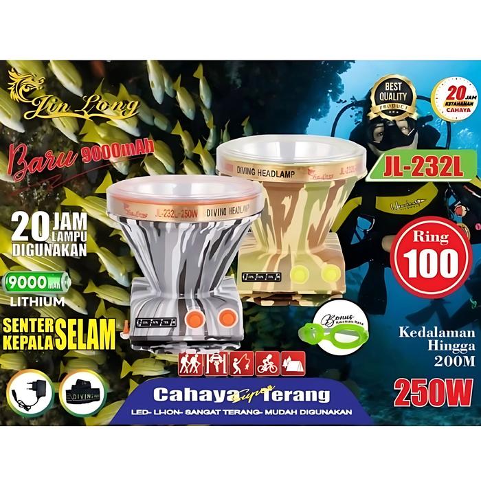 ~Senter Kepala Selam 250W Jin Long JL-232L/JL-132L 250 Watt Super Terang JL 232L Cahaya Putih /