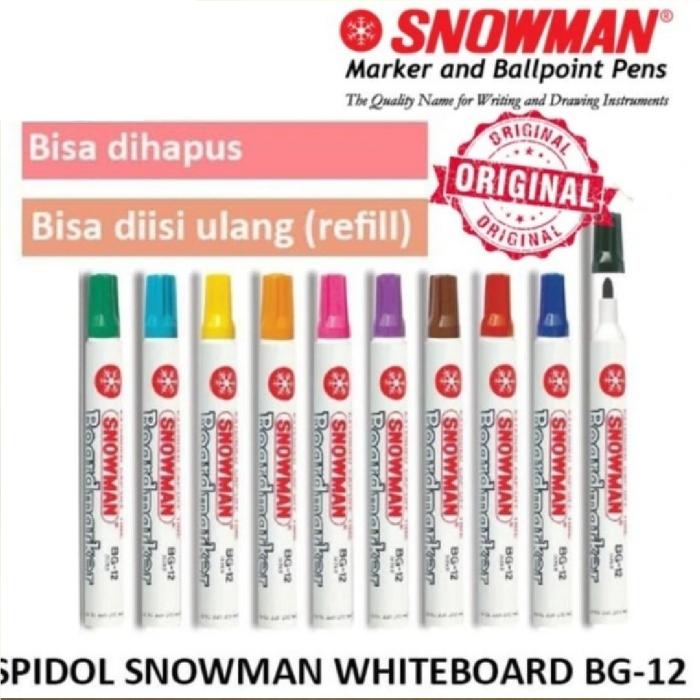 Snowman Spidol Whiteboard BG12 / Papan Tulis Marker Warna Warni Murah - Hitam