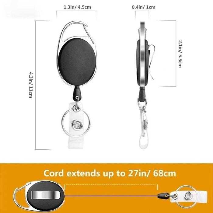 YOYO ID CARD CARABINER/TRANSPARAN Tali Id Card Gantungan/Retractable Keychain Flexible-Ms.Pepeleria - Putih