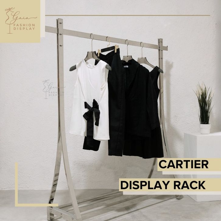 Gawang Premium CARTIER SILVER Tinggi 180 Dan 150 Gantungan Baju Mewah Rak Pajangan Toko Clothing Display Standing