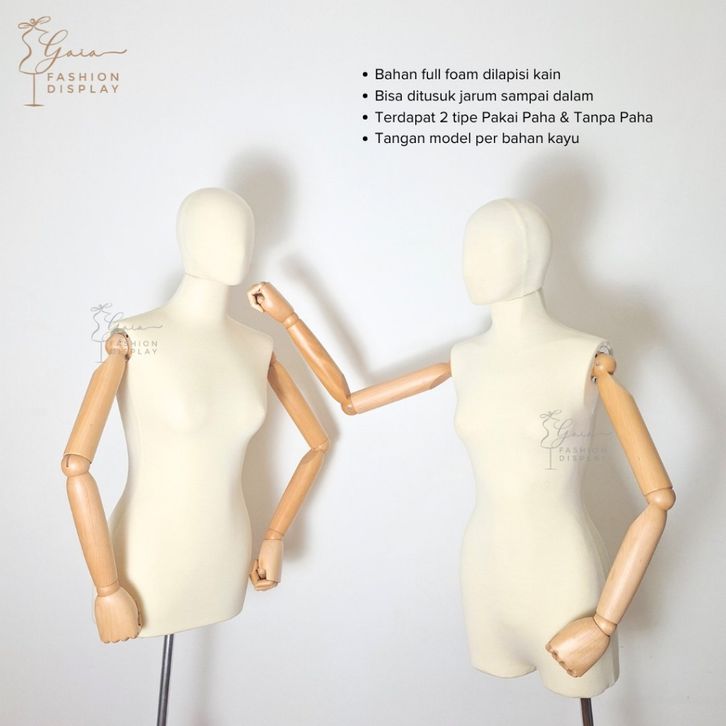 Patung Manekin BRIONA BRIONY Dm Cewek Kepala Paha Tanpa Paha Setengah Badan Tusuk Jarum Tangan Robot Kayu Asli + Kepala