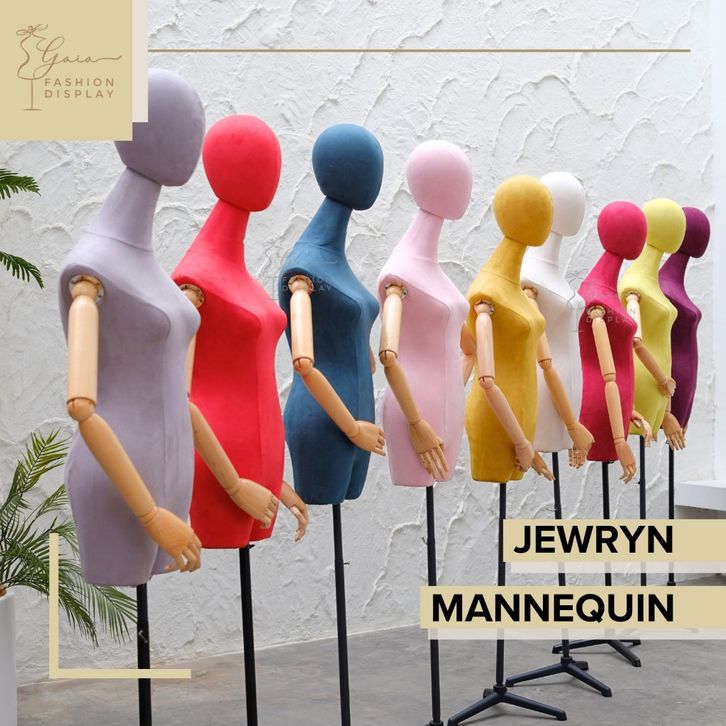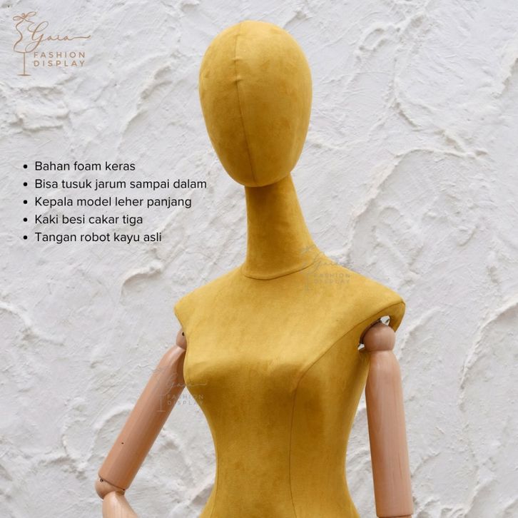 Manekin JEWRYN DM Bludru Collore Tangan Kayu Robot Patung Dm Tiang Hitam Tangan Robot Bludru Ada Kepala (BH)