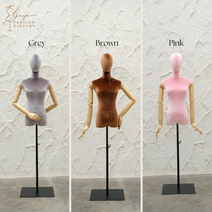 Manekin Set VELSA Tiang Plat DM Bludru Tangan Kayu Robot Patung Dm Tiang Hitam Tangan Robot Bludru Ada Kepala (BH)