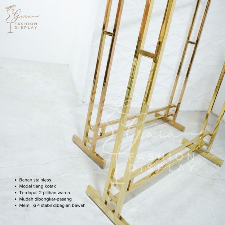 Gawang MAXI Gantungan Baju Rosegold Gold / Rak Baju Mewah Kokoh Mewah Gawang Stainless Tebal Kotak (BH)