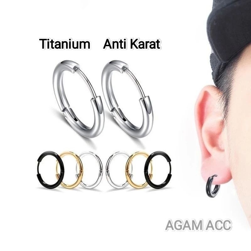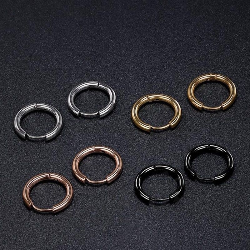 1 Pasang Anting Tindik Model Hopp Titanium Pria dan Wanita Anting Bulat Silver Black Earrings (A. Hoop)