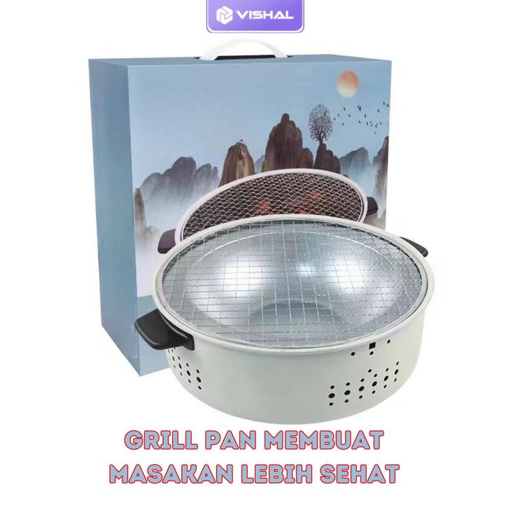 Alat Pemanggang Bulat Barbeque Grill Pan Multifungsi / Bakaran Sate Portable / Tempat Pemanggang BBQ Grill Pan VS-1869