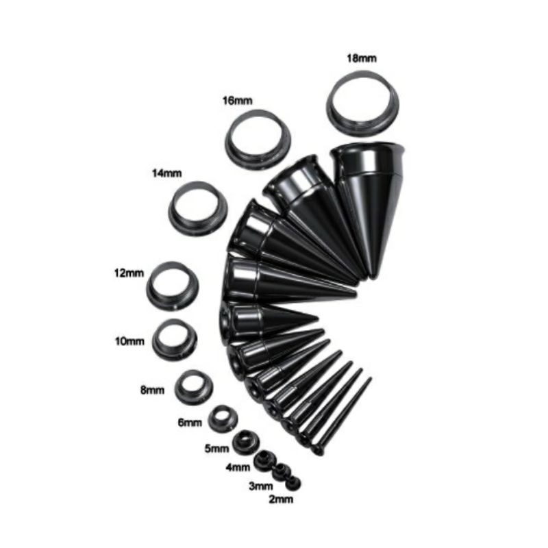 1PCS Set Anting PIERCING TAPPER PLUG TUNNEL Anting EARPLUG STAINLESS STELL SILVER/BLACK 2mm - 20mm