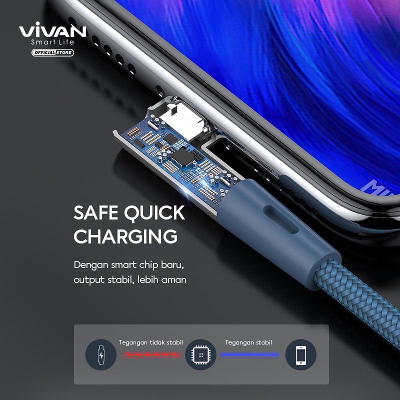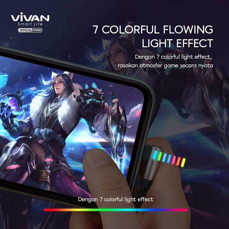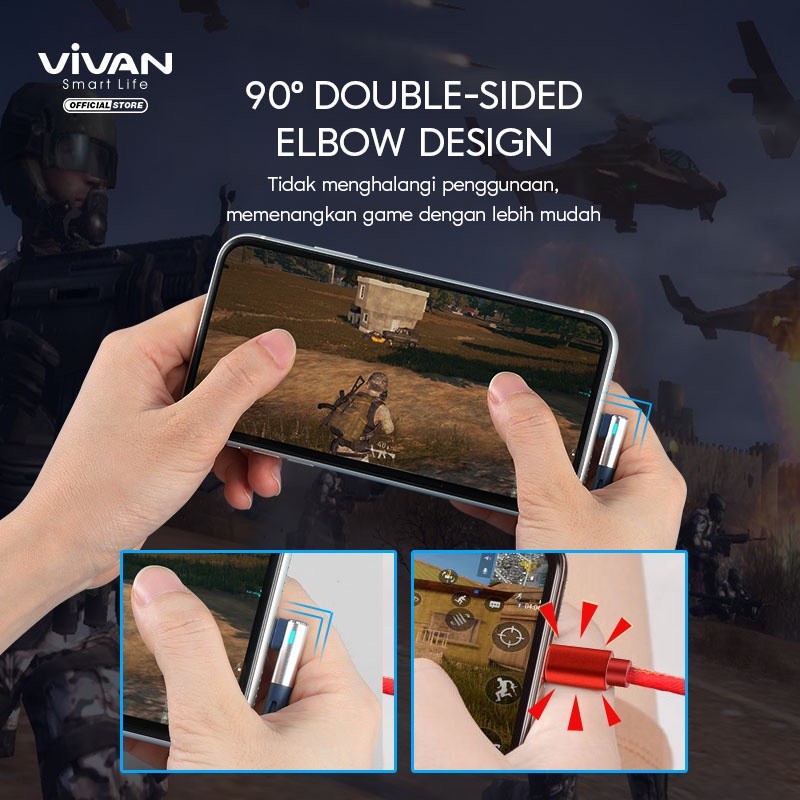 KABEL DATA GAMING Type-C VIVAN BWC100S Fast Charging 2.4A 100cm 90° Android - ORIGINAL GARANSI RESMI 1 TAHUN BY