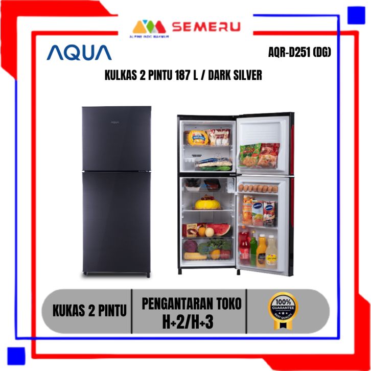 Terlaris AQUA KULKAS 2 PINTU 187 L / DARK/LIGHT SILVER AQR-D251 KHUSUS MAKASSAR Elegan