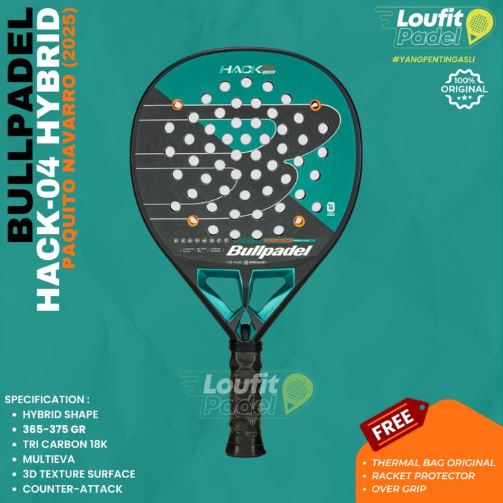BULLPADEL RACKET | PADEL RAKET BULLPADEL HACK 04 HYBRID (2025) ORIGINAL | Carbon 18K used by Paquito Navarro