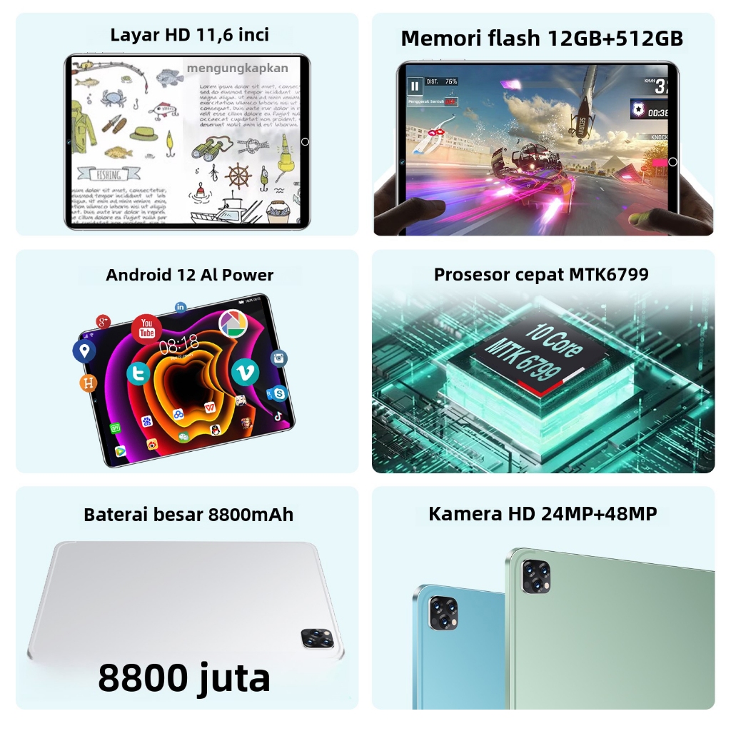 Tablet Pro11(12GB + 512GB) | IPS 11.6" | Tablet Murah untuk Belajar,Gaming, Kerja & Hiburan