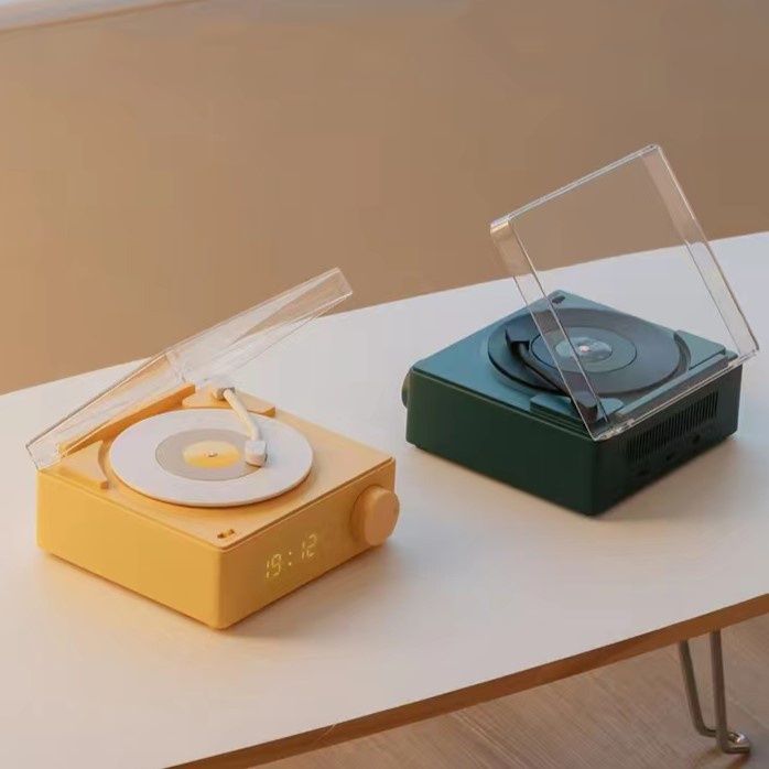 Round-X11 Atomic Speaker Bluetooth Jam Alarm Speaker Retro bentuk Vinyl Record Player
