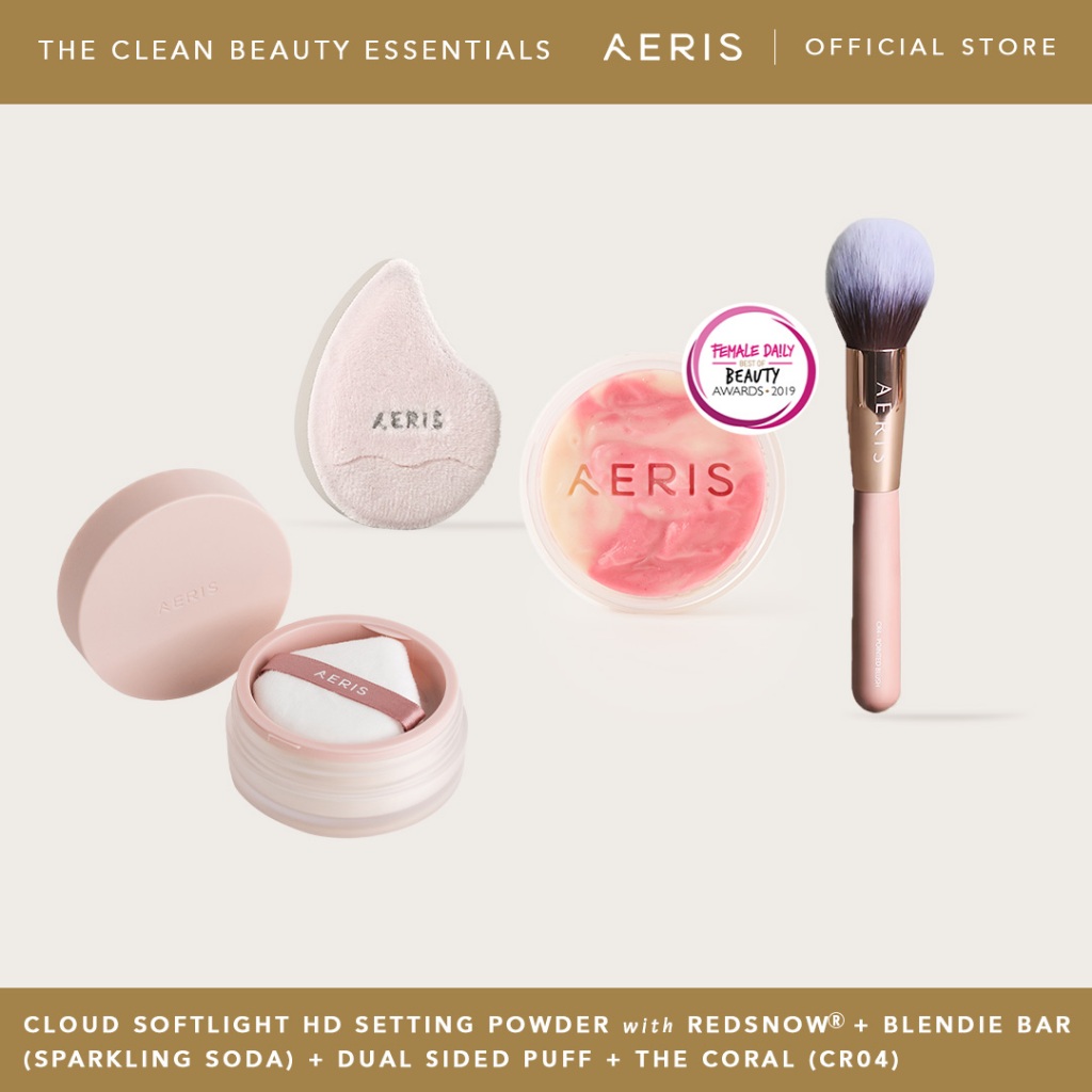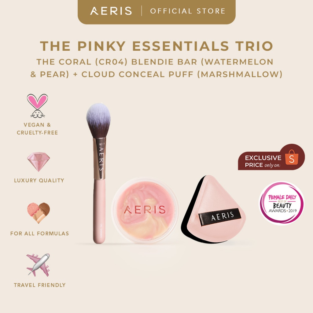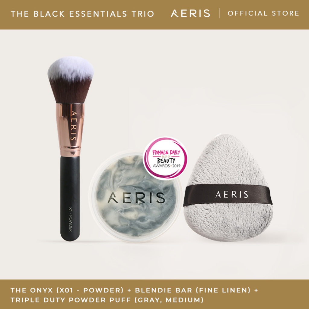 Aeris Beauté The Essentials Trio Bundle | Brush Make Up Premium Lembut Multifungsi Travel Portable untuk Bedak Foundatio