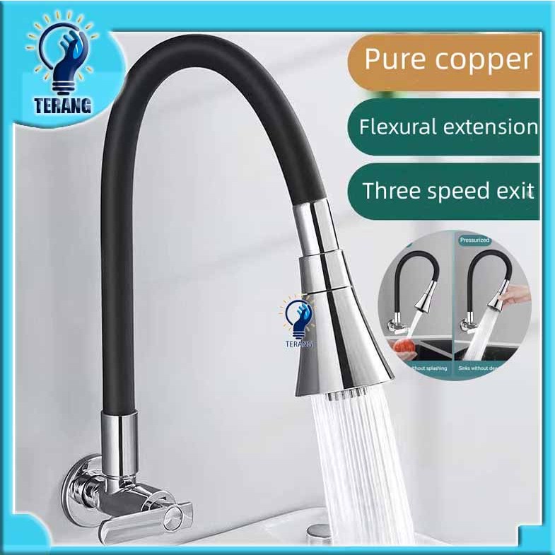 SUS 304 Stainless Kran Serbaguna Kran Angsa Cuci Piring Dapur Fleksibel Multi Fungsi Model Tembok