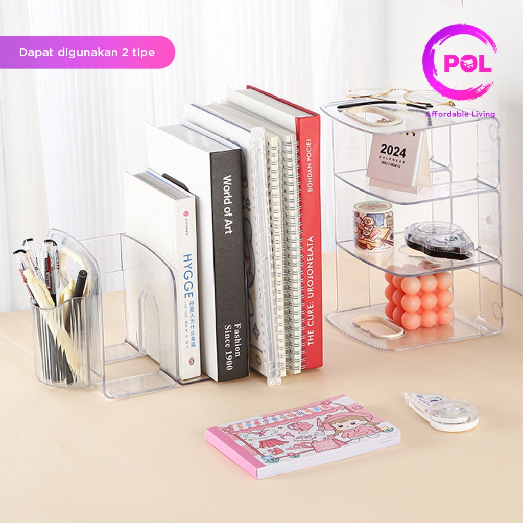 POL - Rak Buku Organizer Meja Akrilik 4 Sekat