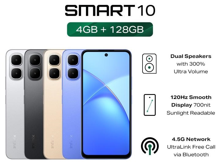 Infinix Smart 10 4/128GB - Up to 8GB Extended RAM - 6.67 inch 120Hz HD+ - T7250 - 5000 mAh