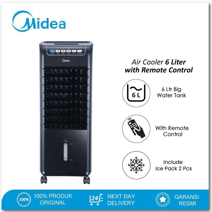 Midea Air Cooler AC-100 A (B) 6 Liter Hitam Kipas Pendingin Ruangan Penyejuk Udara