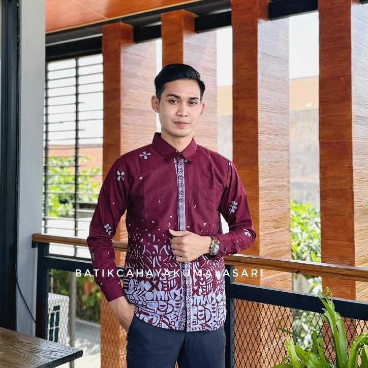 Kemeja Batik Pria Lapis Furing Motif MAHESWARI Burgundy - Atasan Kerja Pria Bahan Katun Prima