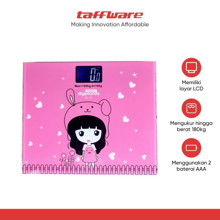Taffware Digipounds Timbangan Badan Mini Digital Desain Kartun 180Kg - SC-01
