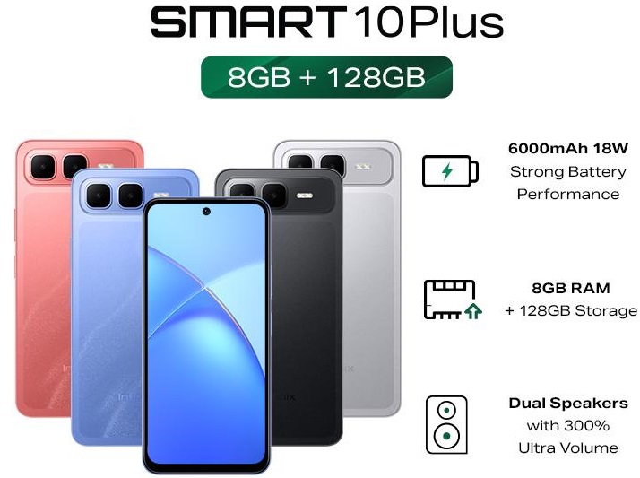 Infinix Smart 10 Plus 8/128GB Up to 16GB Extended RAM - 6.67 inch 120Hz HD+ - T7250 - 6000 mAh