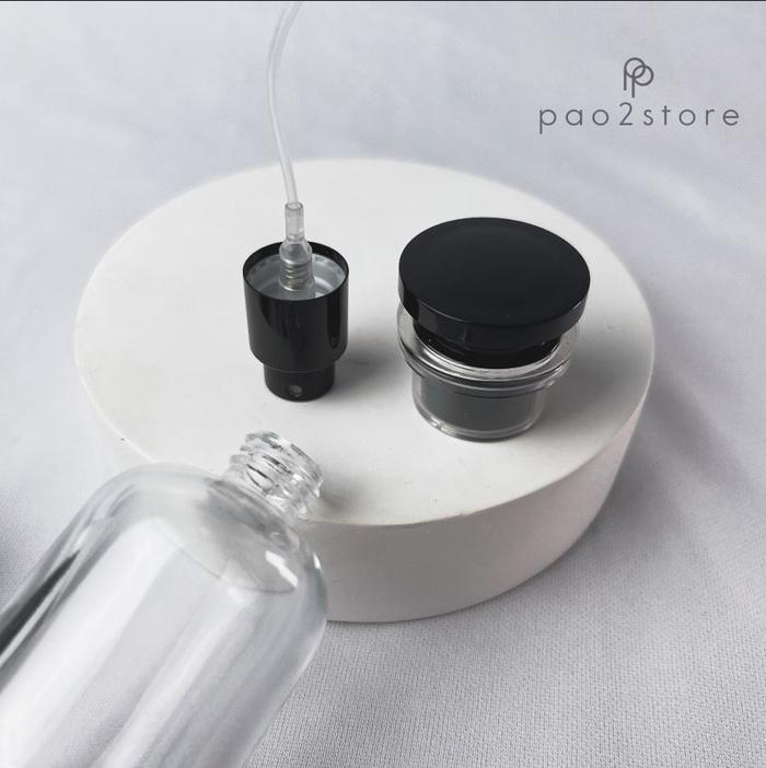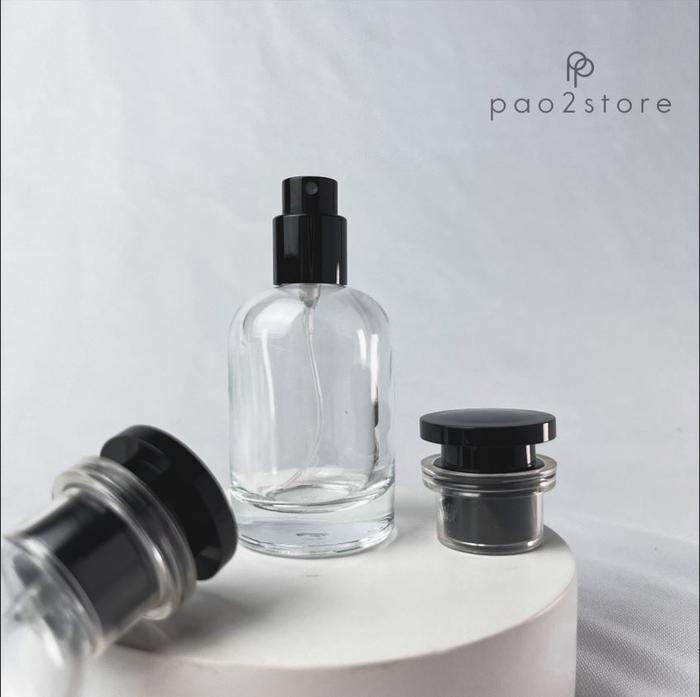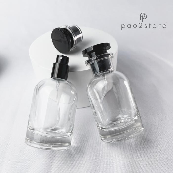 Botol Parfum 50ml Spray Ulir Kaca Tebal Clear - Tutup Hitam Isi Ulang Minyak Wangi - LVT