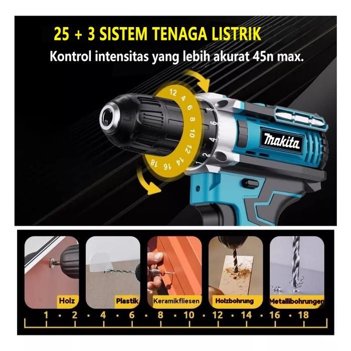 MAKITA 766V/388V Mesin bor cordless/ bor listrik/bor baterai/Impact Drill Bor Beton - 388V+ Baterai*1