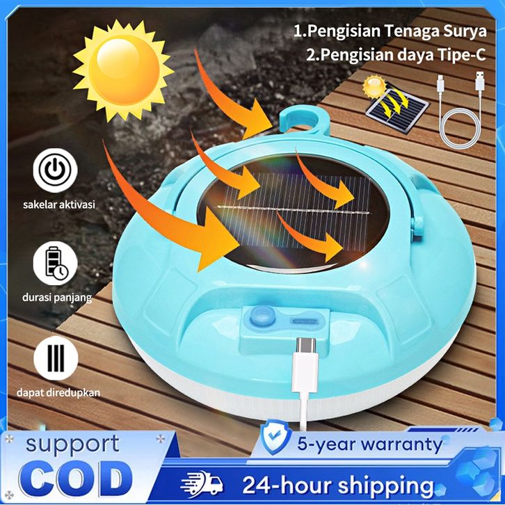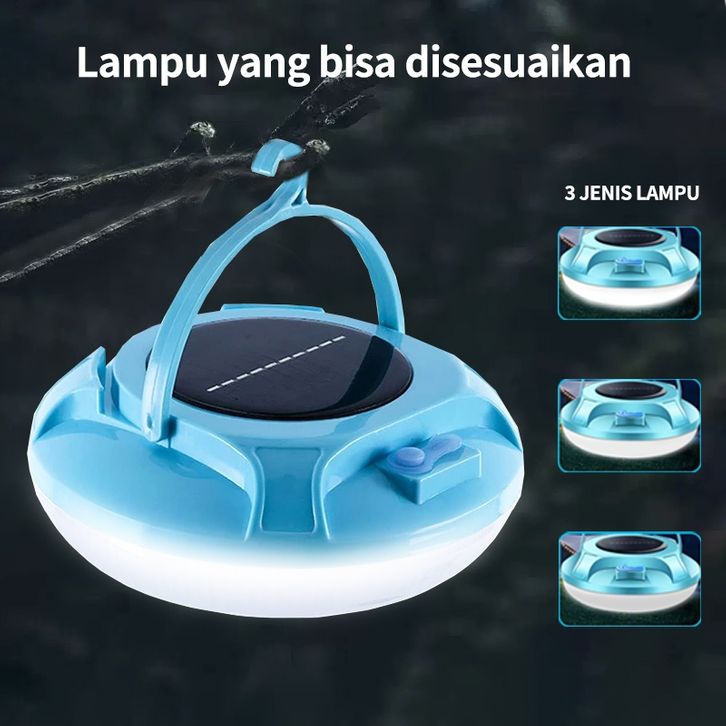 PREMIUM Lampu Darurat 2in1 UFO Lampu Gantung LED Lampu Gantung Tenaga Surya Lampu Darurat Multi Fungsi, Bertenaga