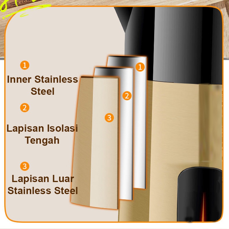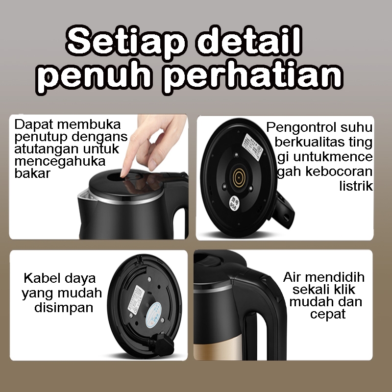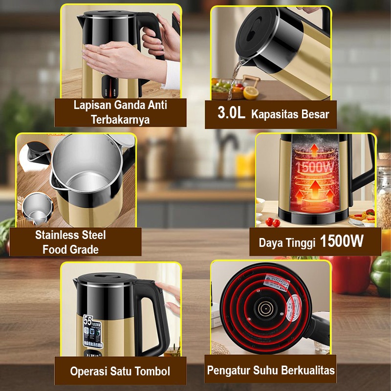 3.0L Teko Listrik Electric Kettle Pemanas Air Listrik / Food Grade Double Wall Stainless Steel