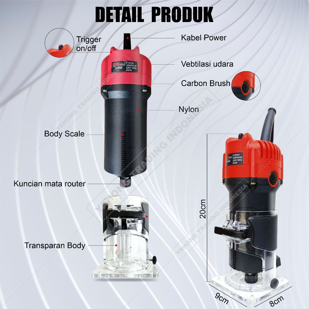 Mesin Router Trimmer Alat Pengukir Kayu 6.35mm SUNC TOOLS