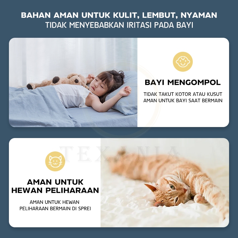 TEXANlA Sprei Waterproof Anti Air Anti Ompol Anti Bocor Free 2 Sarung Bantal + 1 Guling Murah Berkualitas KUALITAS TERBAIK