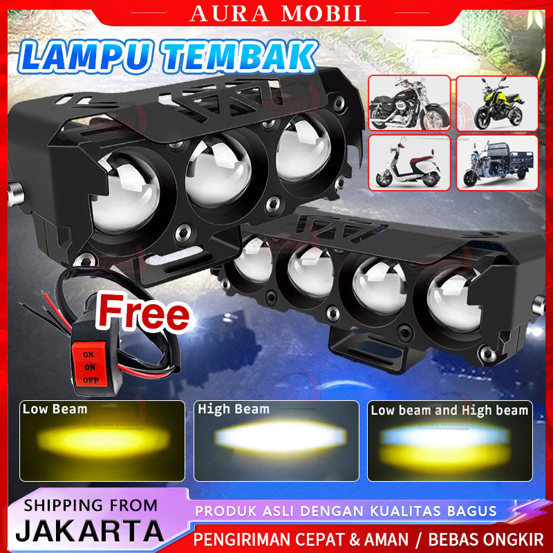 Lampu Tembak Sorot LED Laser 3 Mata 4 Mata 35W 45W WATT 2 WARNA Lampu Tembak Kendaraan Motor Mobil SQL DC 12-85V Volt 25 Watt Dekat Jauh High Low Super Terang Waterproof Body Besi
