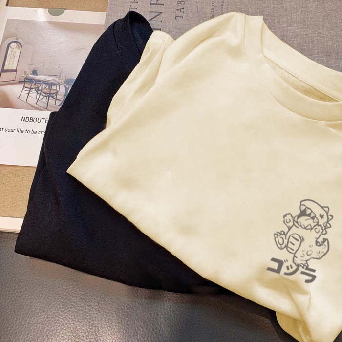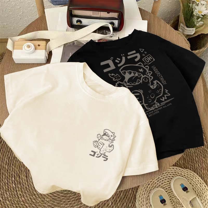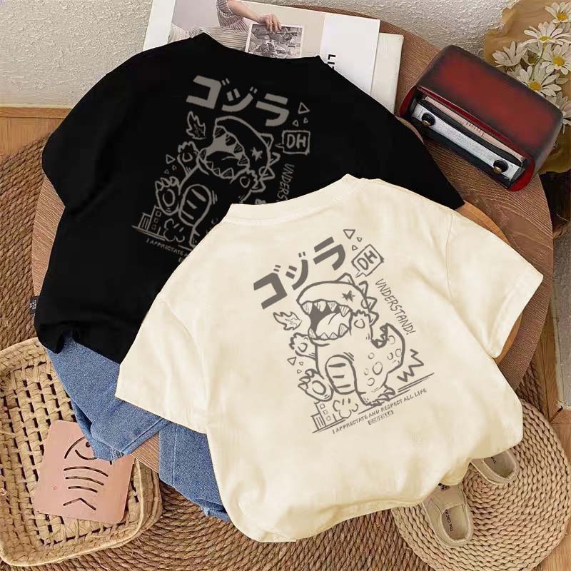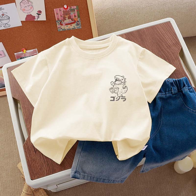 korea style Aprikot cocobaby t shirt cotton Kaos Atasan Anak laki-laki Perempuan | Line Strokes Dinosaur Tshirt anak | 2