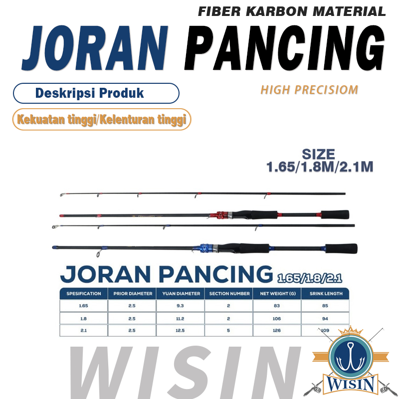 Wisin Joran Pancing 1.65m 1.8m 2.1m Fishing Rod Carbon Resistansi Maks 20KG Fishing Pole 2 Section Joran Fiber Murah