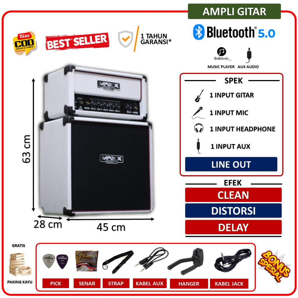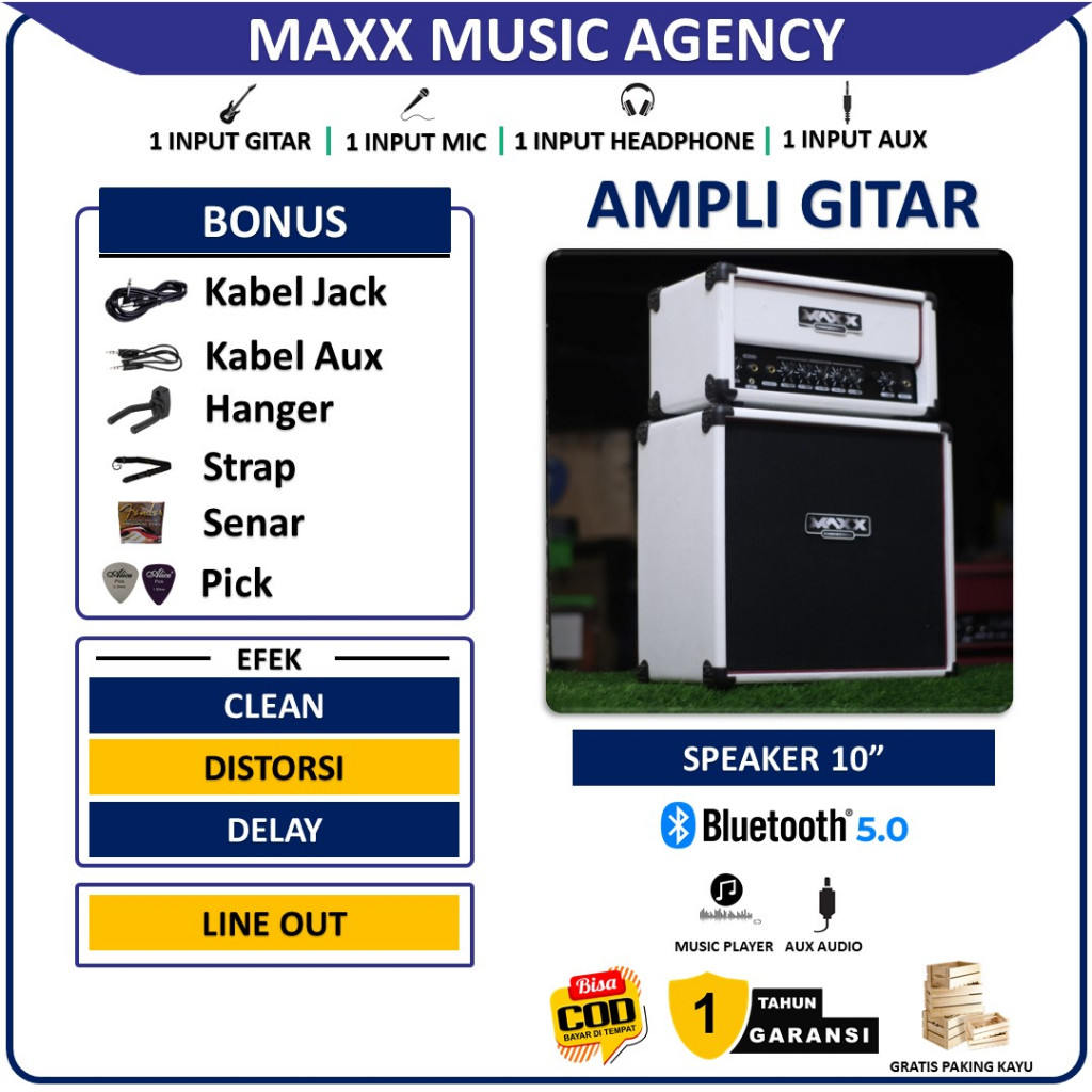 Ampli gitar & bass original 10 In 3 input bluetooth bisa karaoke head cabinet efek distorsi delay