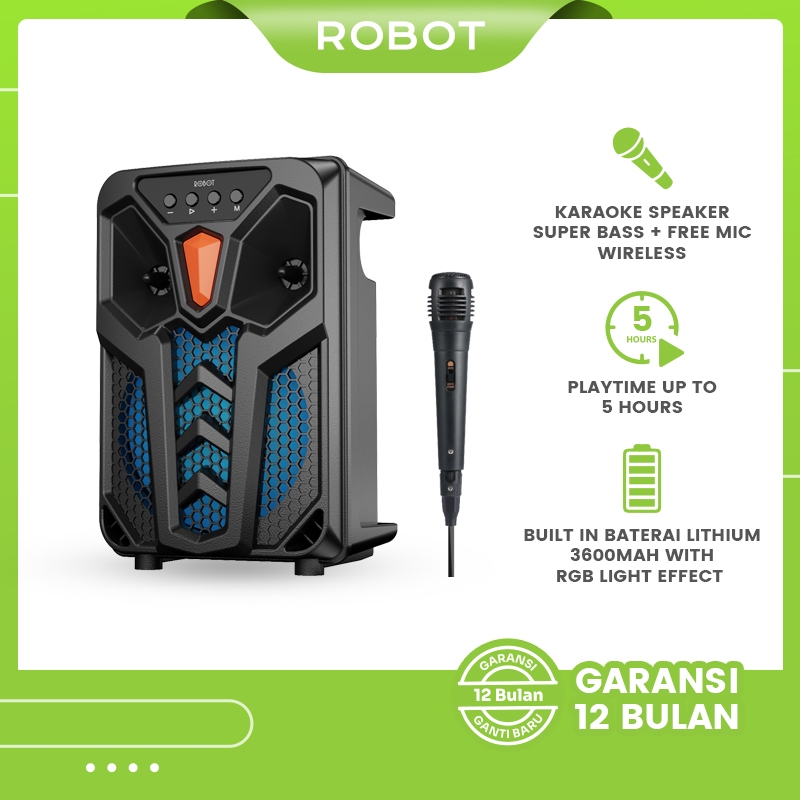 ROBOT Karaoke Speaker Rb300 Bluetooth 5.1 With Micropone Rgb Light Daya 10w Bass Free Mic 8 Inchi Wireless TERLARIS