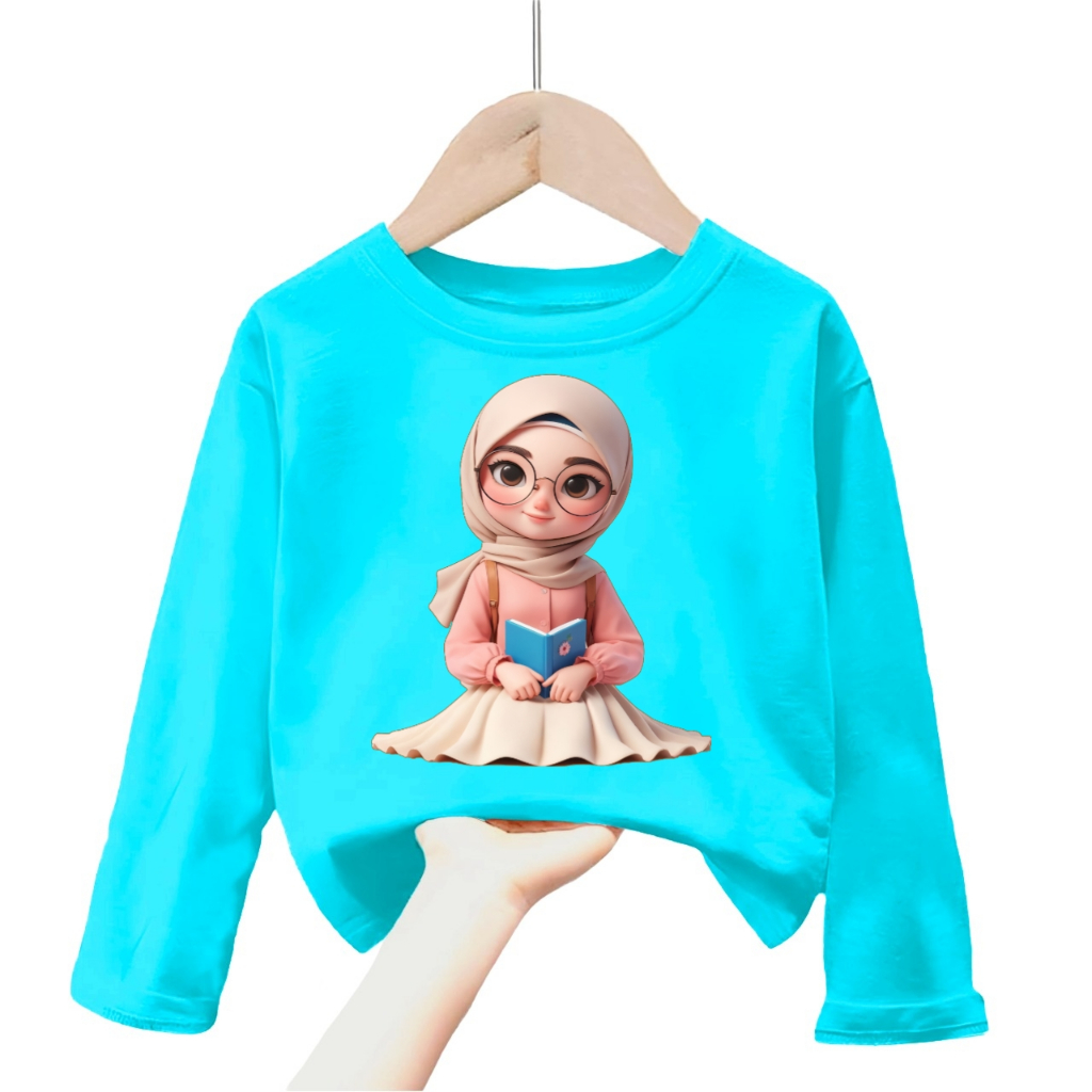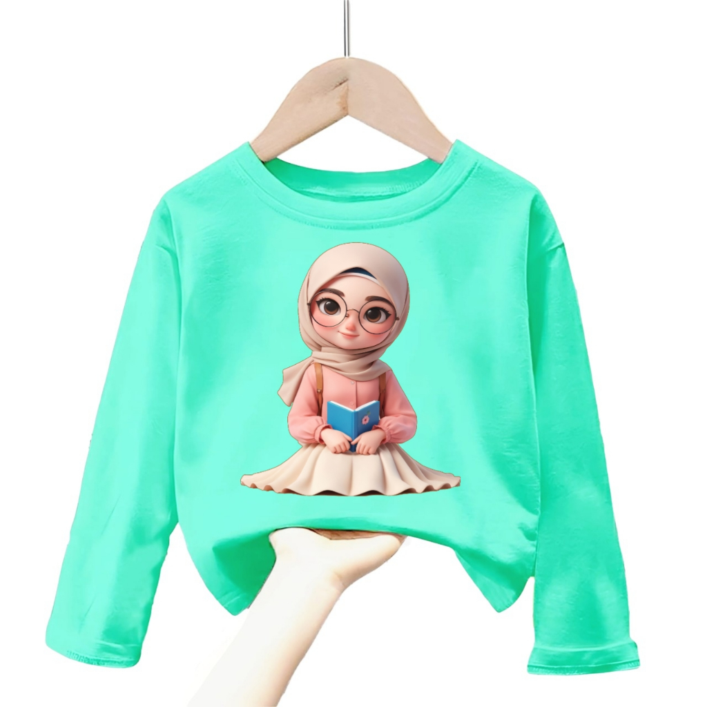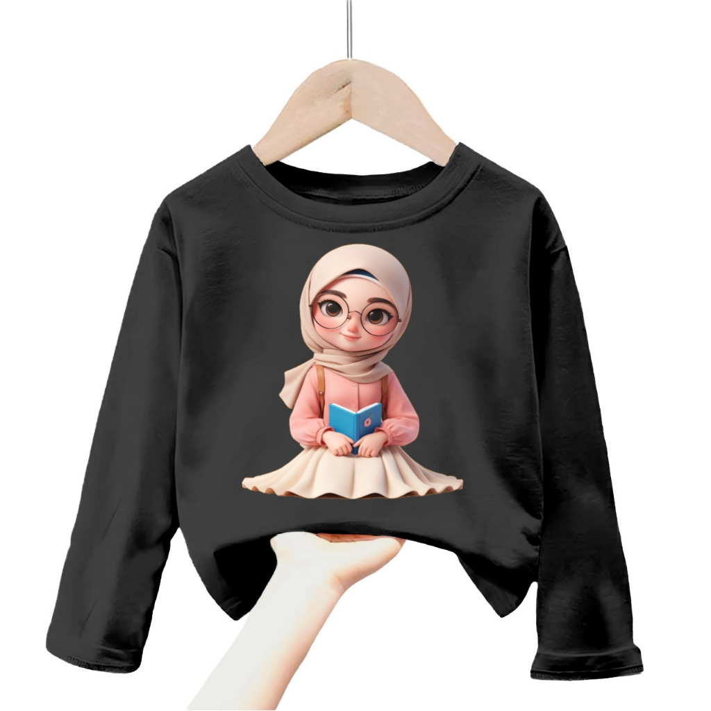 atasan baju kaos anak perempuan gambar hijab lengan panjang 1-12tahun k.161