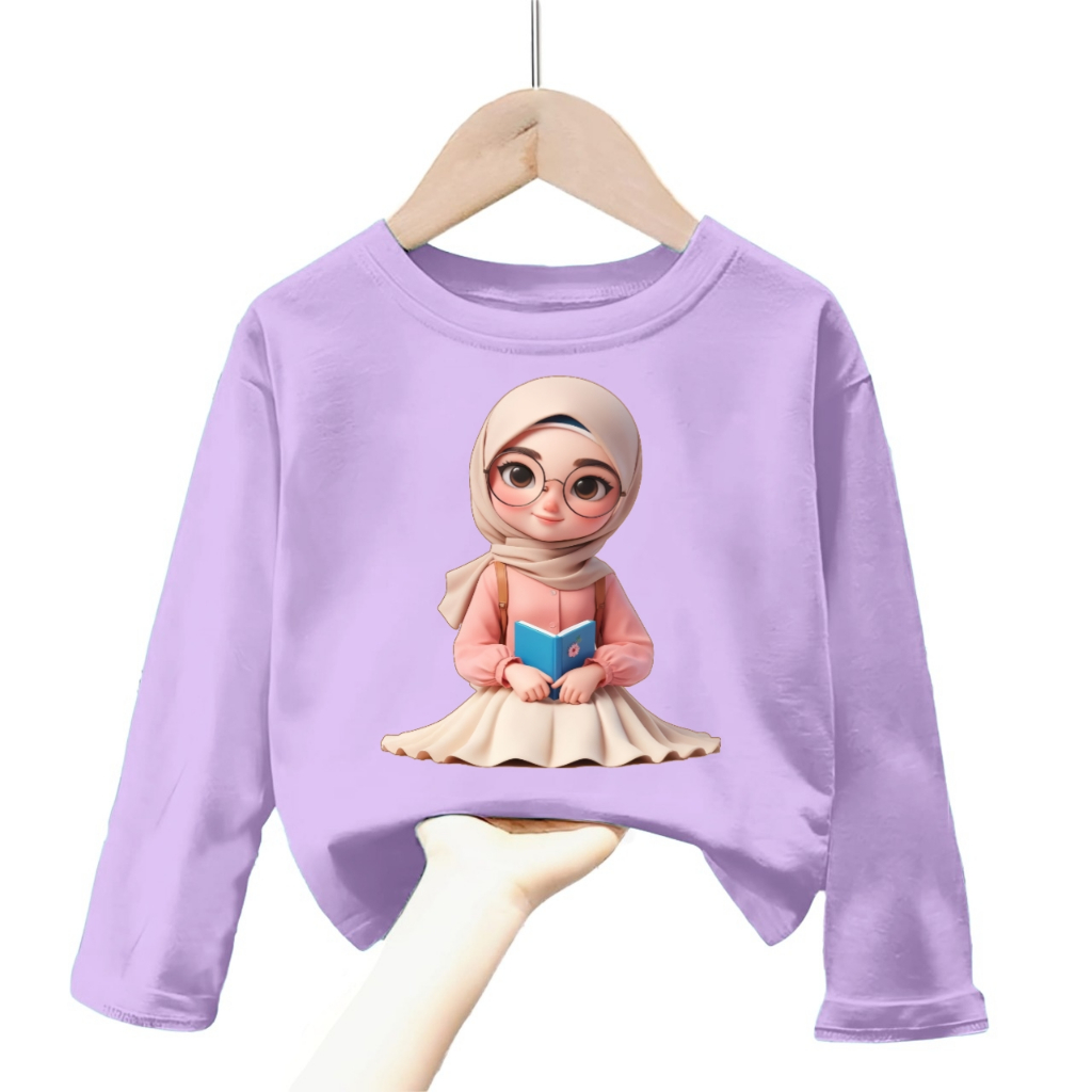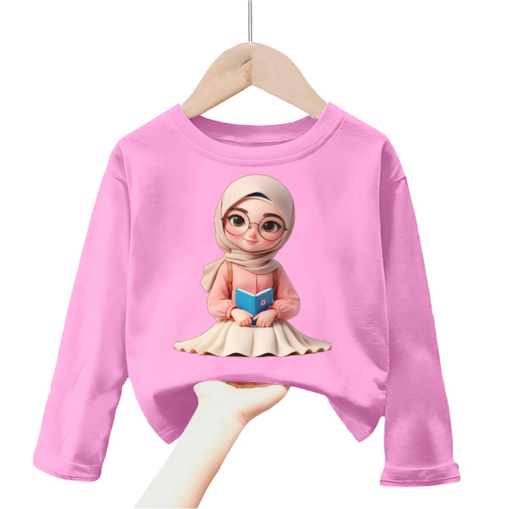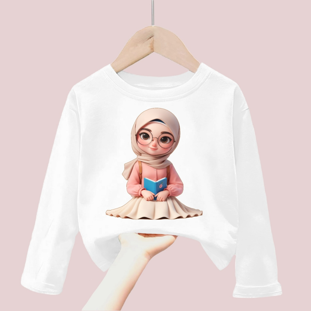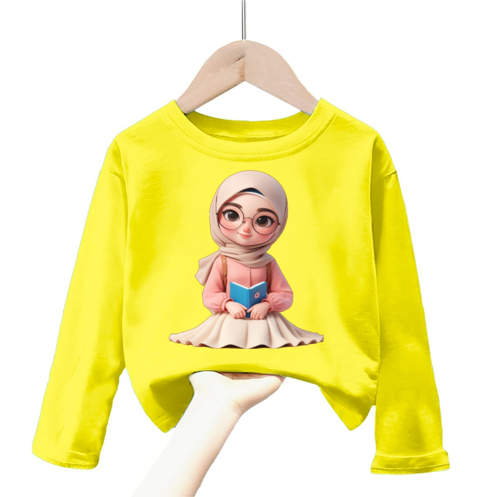 atasan baju kaos anak perempuan gambar hijab lengan panjang 1-12tahun k.161