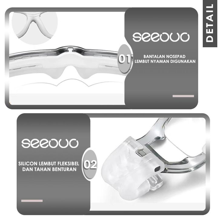 Seeouo Kacamata Sport Lensa Plano Olahraga Sepak Bola, Voli, Basket Style Kotak Dewasa Bahan Tr90 Fashion